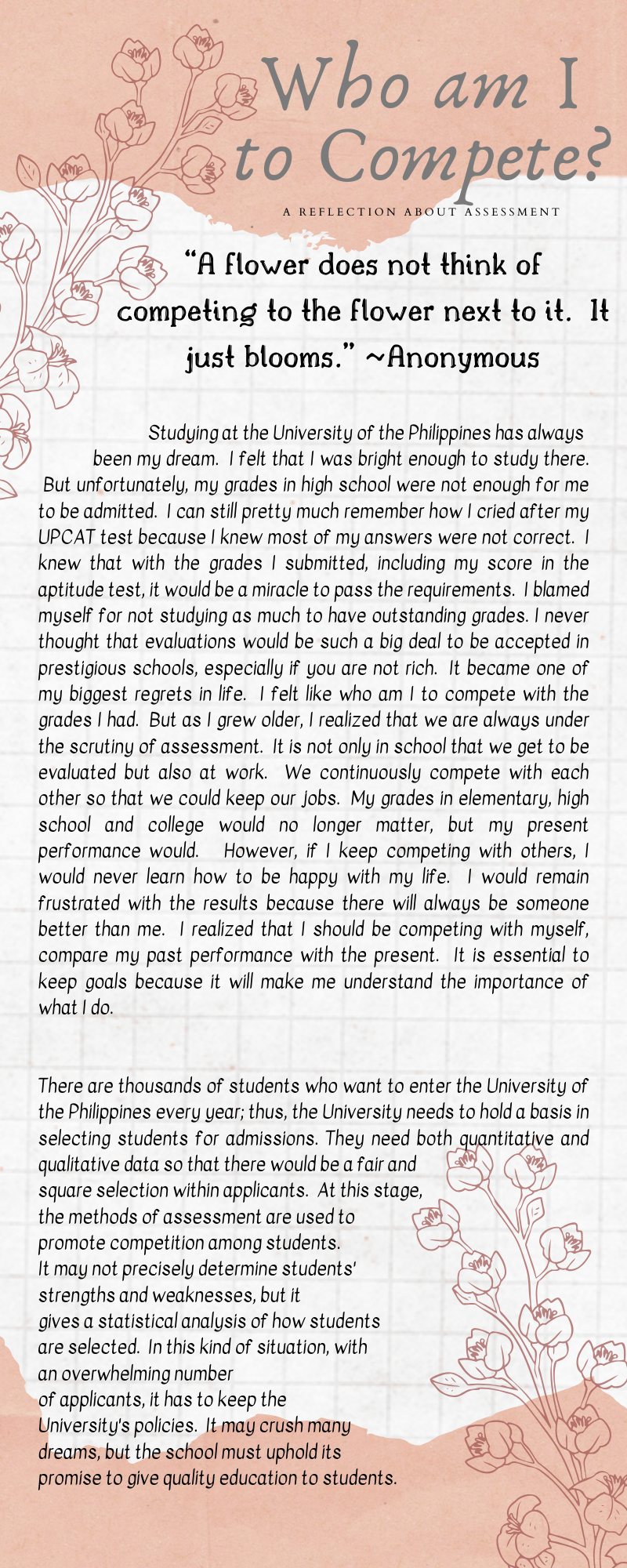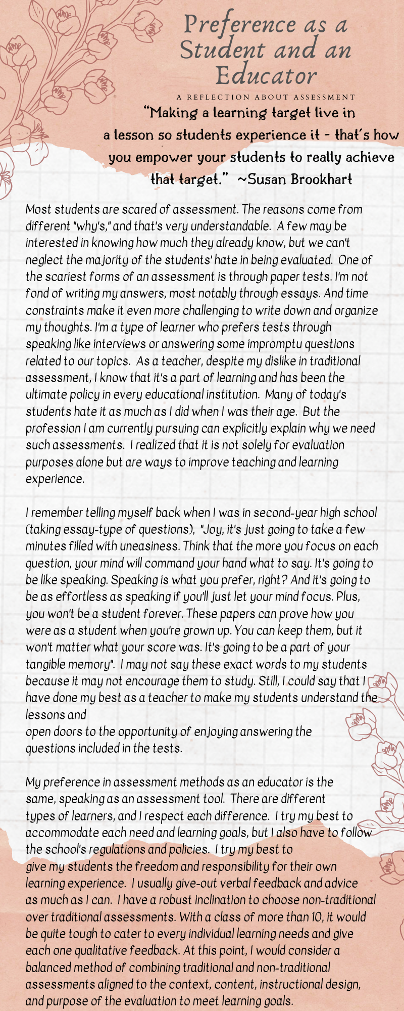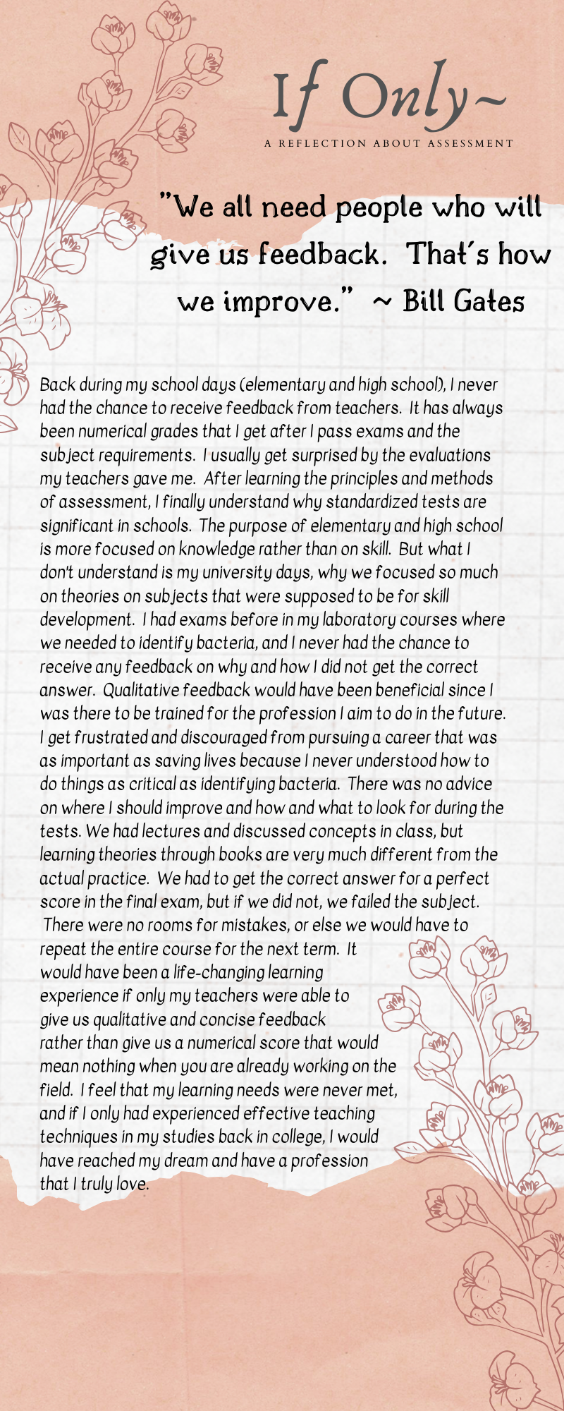 Feel free to read my simple thoughts about EDS 113 Principles and Methods of Assessment in Education. Happy learning.